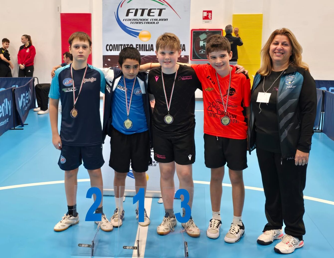 Il 1° Torneo Giovanile di tennis tavolo, svoltosi il 2 novembre 2025 a San Felice sul Panaro, ha regalato emozioni e risultati importanti per i nostri giovani atleti. Tra i protagonisti assoluti, spiccano Sacchi Riccardo che conquista il 3° posto e Centonze Alberto il 14° nella categoria UNDER 13, i fratelli Casadei Michelangelo e Nicolò, che hanno conquistato rispettivamente il 5° posto nella categoria UNDER15 e il 4° posto nella categoria UNDER11, dimostrando talento, grinta e una passione condivisa per il tennis tavolo.